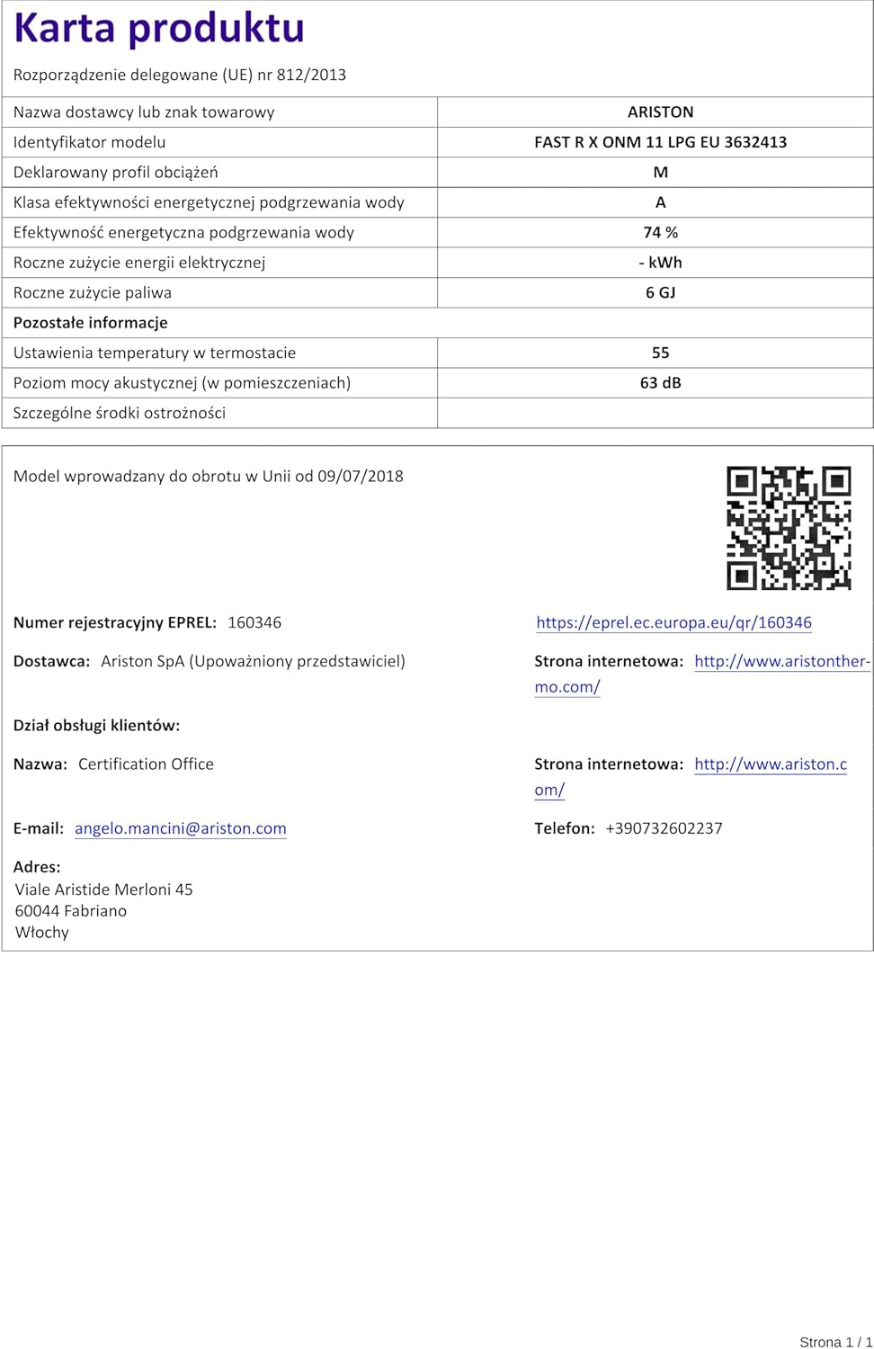 Ariston Fast RX - Chauffe-eau au butane 11L/min Réchauffeur atmosphérique au gaz butane et propane à faible consommation Régulation mécanique 25,5x31x61 Fabriqué pour une installation en Espagne, Gamme d'efficacité A (A+/F)