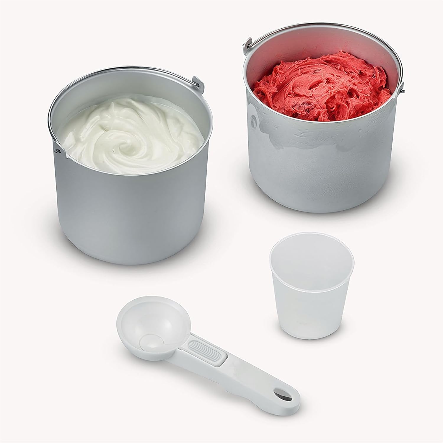- De multiples accessoires - Le livre de recettes et les 2 récipients de 2 L inclus dans cette sorbetière automatique. faciliter la préparation consécutive de plusieurs types de glaces, sorbets ou yaourts