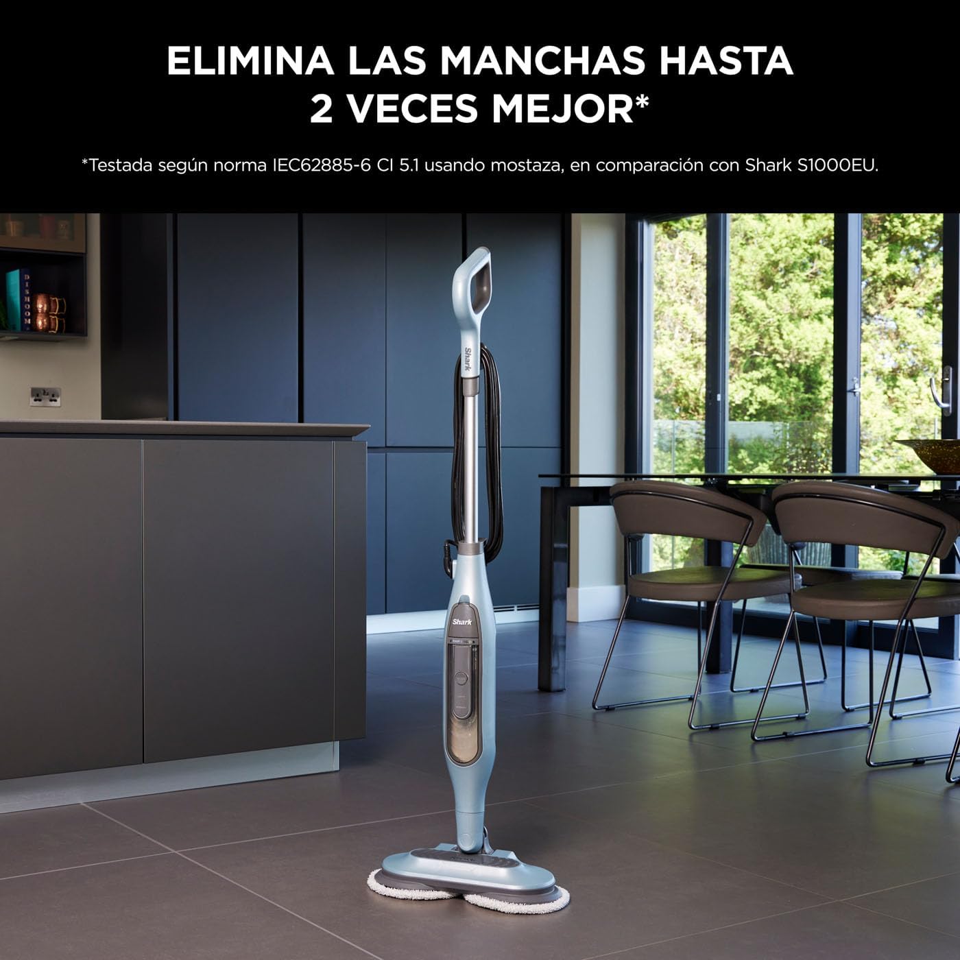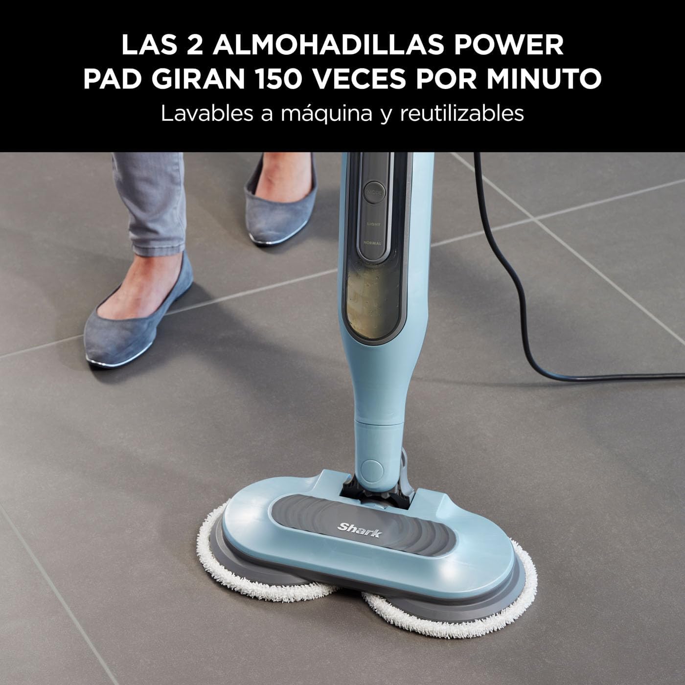 - COMPREND : Vadrouille à vapeur et vadrouille automatique Shark Steam & Scrub (prise UE), 4 tampons réutilisables lavables en machine (2 jeux), cordon d'alimentation de 8 m. Poids 3,1 kg. Couleur : Bleu