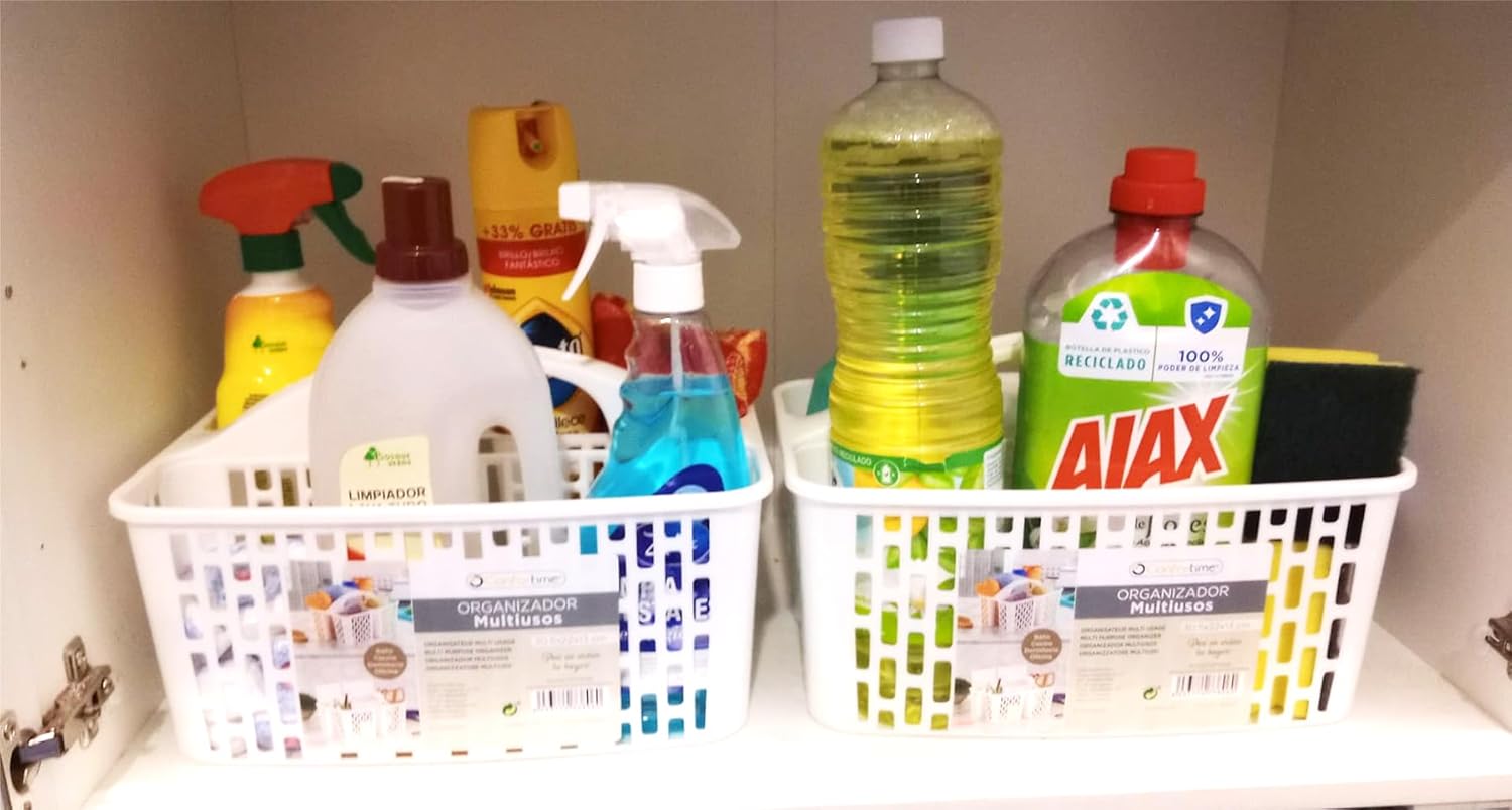 Panier de rangement polyvalent - Salle de bain, cuisine, réfrigérateur, organiseur de bureau - Paquet de deux paniers - Plastique, Blanc, Poli